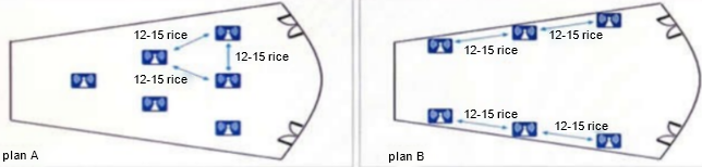 When designing the WLAN network planning for the lecture hall scenario, the engineer proposed two network planning solutions as shown in the figure.