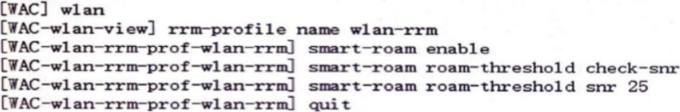 [WAC-wlan-rm-prof-test] smart-roam quick-kickoff-threshold snr 75 - C . WAC-wlan-view] rrm-profile name test