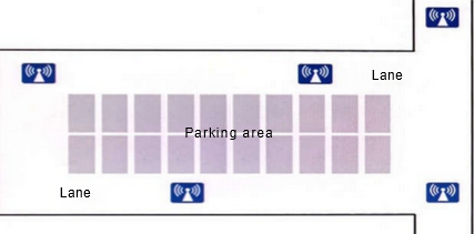 As shown in the figure, in the parking lot scenario, it is recommended to deploy APs above the lanes and deploy APs separately at intersections to ensure signal coverage continuity.