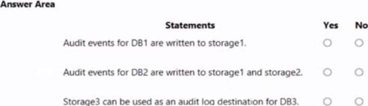 You have an Azure subscription that contains three storage accounts, an Azure SQL managed instance named SQL and three Azure SQL databases.