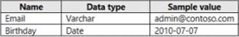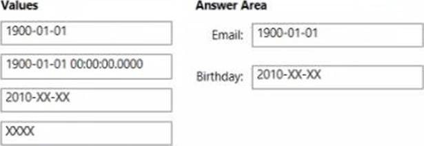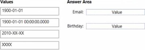 For the Email and Birthday columns, you implement dynamic data masking by using the default masking function.