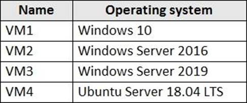 You have an Azure subscription that contains the Azure virtual machines shown in the following table.