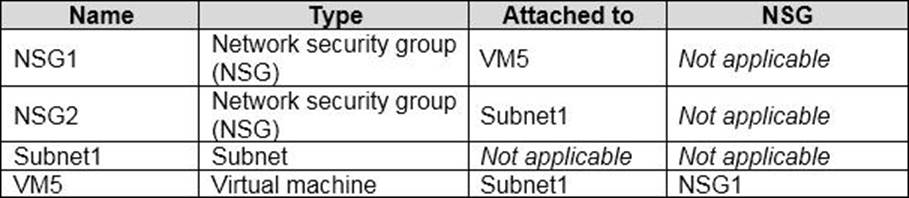 An IP address of 10.1.0.4 is assigned to VM5. VM5 does not have a public IP address.