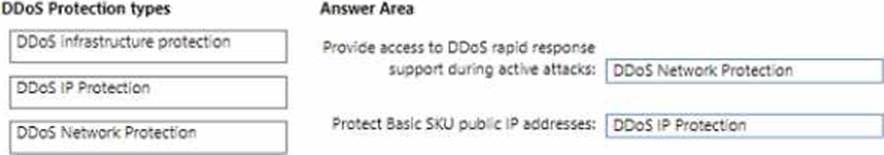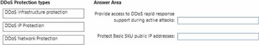 What should you recommend? To answer, drag the appropriate DDoS projection types to the correct requirements. Each DDoS Projection type may be used once, or not at all. You may need to drag the split bar between panes or scroll to view connect. NOTE: Each correct selection is worth one point.