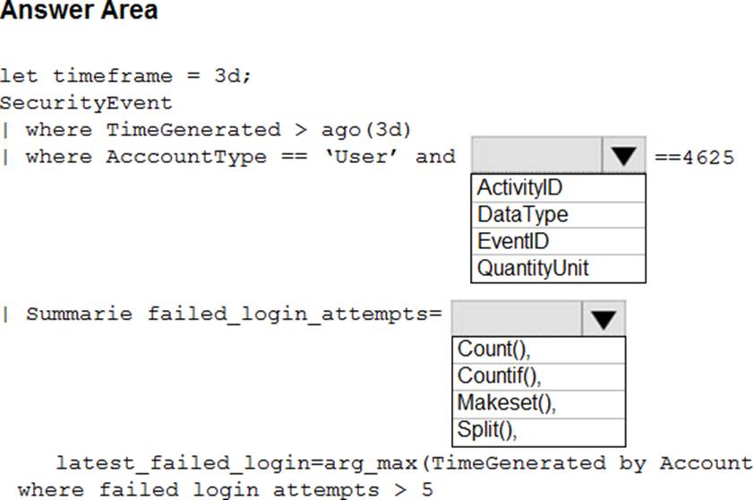 You need to create an Azure Log Analytics query to identify failed user sign-in attempts from the last three days. The results must only show users who had more than five failed sign-in attempts.