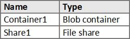 Sub1 has an Azure Storage account named Storage1 that contains the resources shown in the following table.