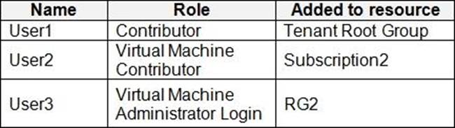 You assign role-based access control (RBAC) roles to the users shown in the following table.