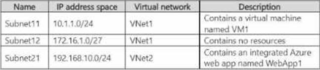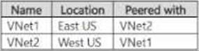 You have an Azure subscription that contains the virtual networks shown in the following table.