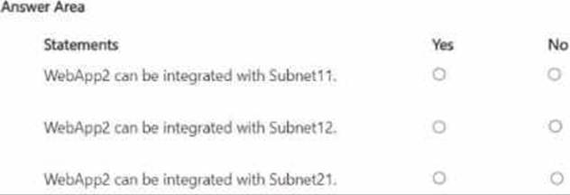 You plan to create an Azure web app named WebApp2 that will have the following configurations: