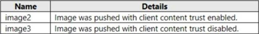 After content trust is enabled, you push two images to ContReg1 as shown in the following table.