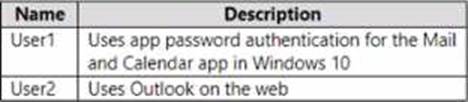 You need to ensure that the users cannot create app passwords. The solution must ensure that User1 can continue to use the Mail and Calendar app.