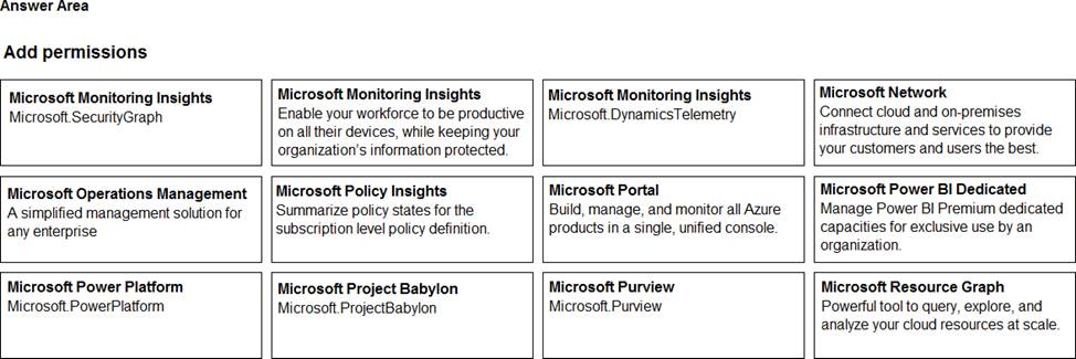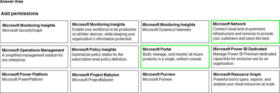 Which two permissions should you add to Role1? To answer, select the appropriate permission in the answer area. NOTE: Each correct selection is worth one point.