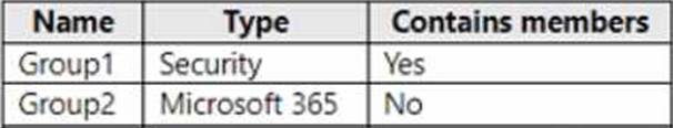 You have an Azure AD tenant that contains the groups shown in the following table.