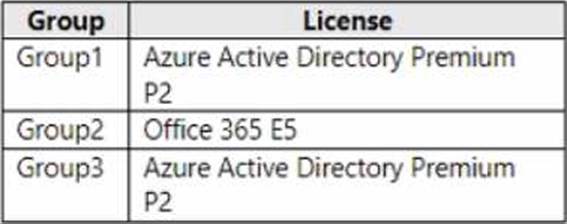You assign licenses to the groups as shown in the following table.
