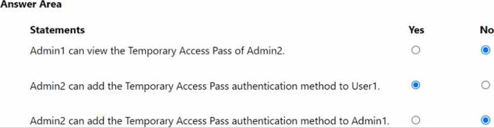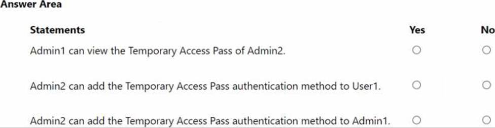 You add the Temporary Access Pass authentication method to Admin2.