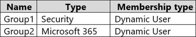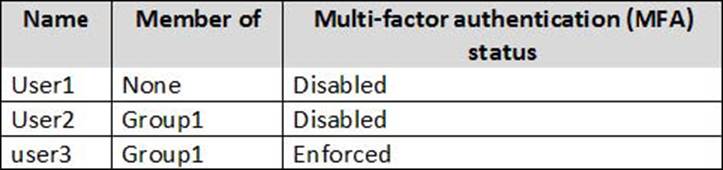You have an Azure Active Directory (Azure AD) tenant named contoso.com that contains the users shown in the following table.