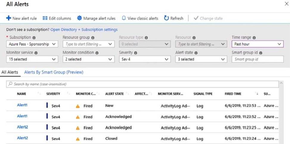You have an Azure subscription that contains the alerts shown in the following exhibit.