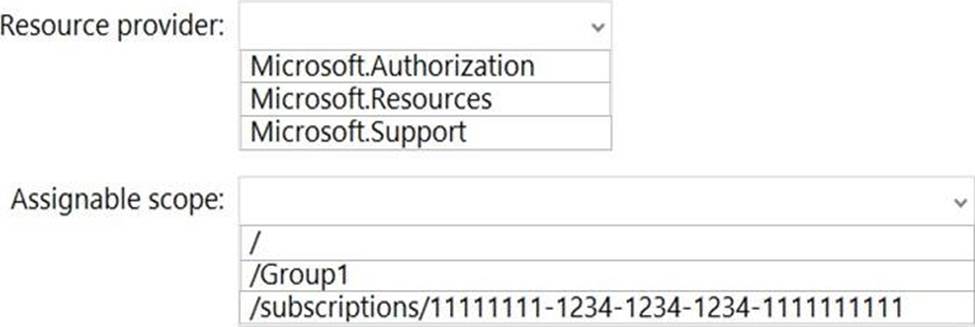 What should you include in the role definition of Role1? To answer, select the appropriate options in the answer area. NOTE: Each correct selection is worth one point.