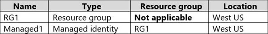 You have an Azure subscription that has a managed identity named identity and is linked to an Azure Active Directory (Azure AD) tenant.