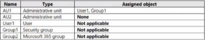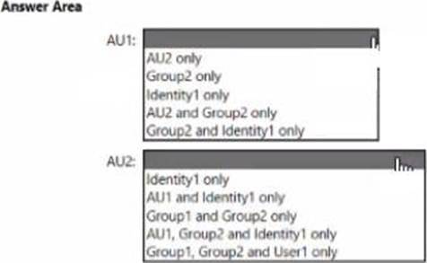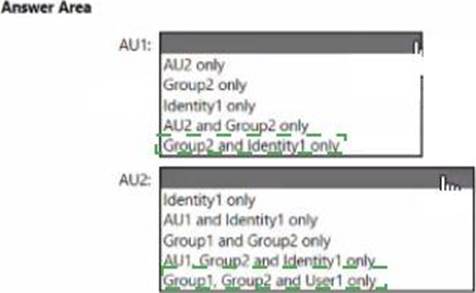 Which resources can be added to AU1 and AU2? To answer, select the appropriate options in the answer area. NOTE: Each correct selection is worth one point.
