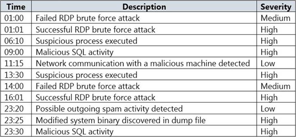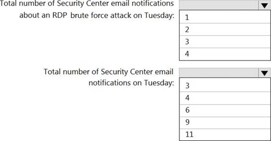On Tuesday, Security Center generates the security alerts shown in the following table.