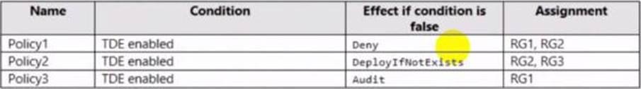 You plan to deploy Azure SQL databases by using an Azure Resource Manager (ARM) template. The databases will be configured as shown in the following table. NOTE: Each correct selection is worth one point.
