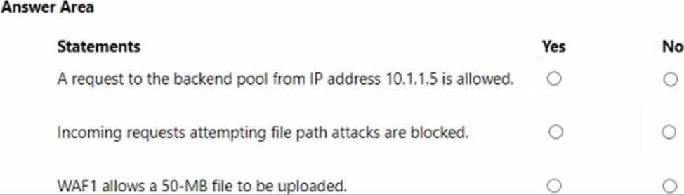 You are implementing an Azure Application Gateway web application firewall (WAF) named WAF1.