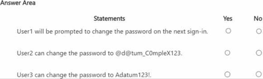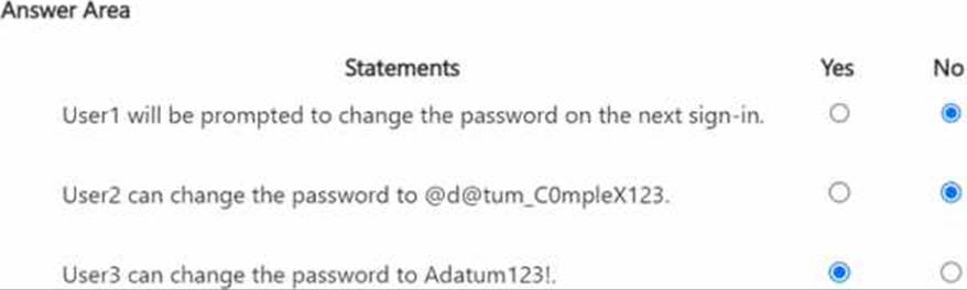 Your network contains an on-premises Active Directory domain named adatum.com that syncs to a Microsoft Entra tenant.