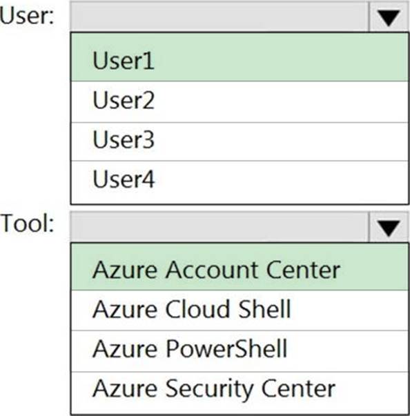 Subscription1 is associated with the Azure Active Directory tenant that includes the users shown in the following table.